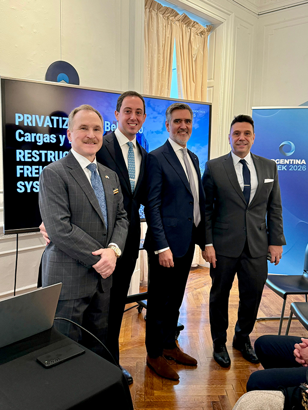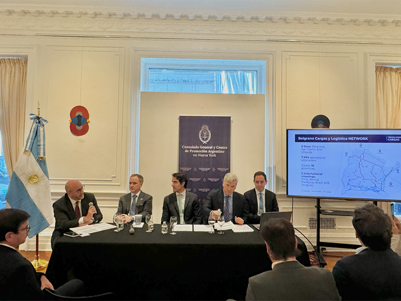 La agenda continuó el 11 de marzo con la presentación del proyecto de concesión ferroviaria Belgrano Cargas ante inversores, bancos y organismos financieros internacionales, a cargo de Alejandro Núñez, presidente de Trenes Argentinos Cargas. El encuentro contó con la participación del Embajador de los Estados Unidos en Argentina, Peter Lamelas, y el Secretario de Relaciones Económicas Internacionales, Fernando Brun, quienes destacaron la importancia de avanzar en infraestructura logística para potenciar sectores estratégicos de la economía argentina.