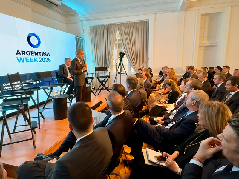 La Argentina Week se llevó a cabo del 9 al 12 de marzo en Nueva York como uno de los roadshows de inversión sobre la Argentina más relevantes de los últimos años, con la participación del Presidente Javier Milei en la sesión de apertura. Durante cuatro días, inversores globales analizaron oportunidades en sectores estratégicos como tecnología, energía, minería, agroindustria, ciencia e innovación, industria farmacéutica y sector nuclear. Más de 50 presidentes y CEOs compartieron perspectivas sobre el renovado marco macroeconómico del país y las reformas orientadas a promover la inversión.
